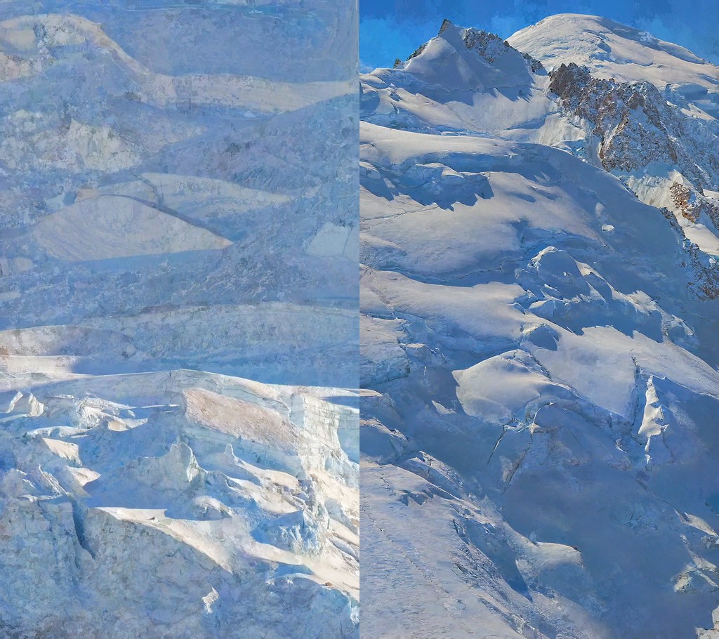 Troisième volet des recherches sur les liens plastiques et symboliques entre upscaling, super-résolution, surexploitation et surtourisme au Mont Blanc.