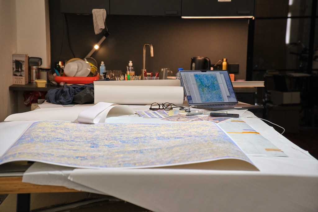 Dans la continuité de recherches sur les super-résolutions (agrandissement par intelligence artificielle), mon écriture plastique du signal se confronte ici aux algorithmes d’amélioration qualitatifs lors d’une ultime opération d’agrandissement qui pousse les résolutions près de 200 millions de pixels.